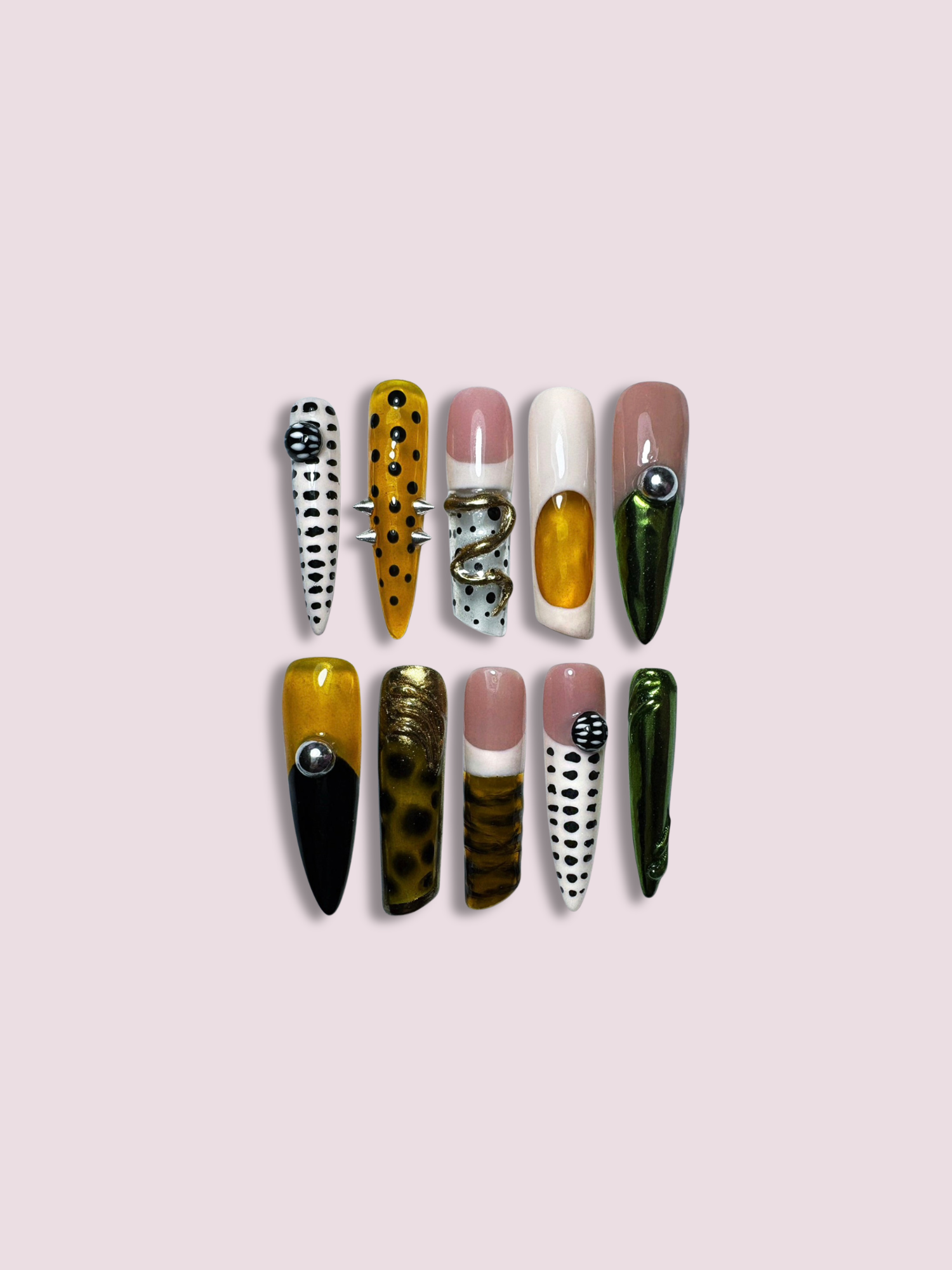 Salon-grade press on nails, repurposed for your routine. Using premium, made-to-order artistry, they deliver high fidelity character right out of the box.